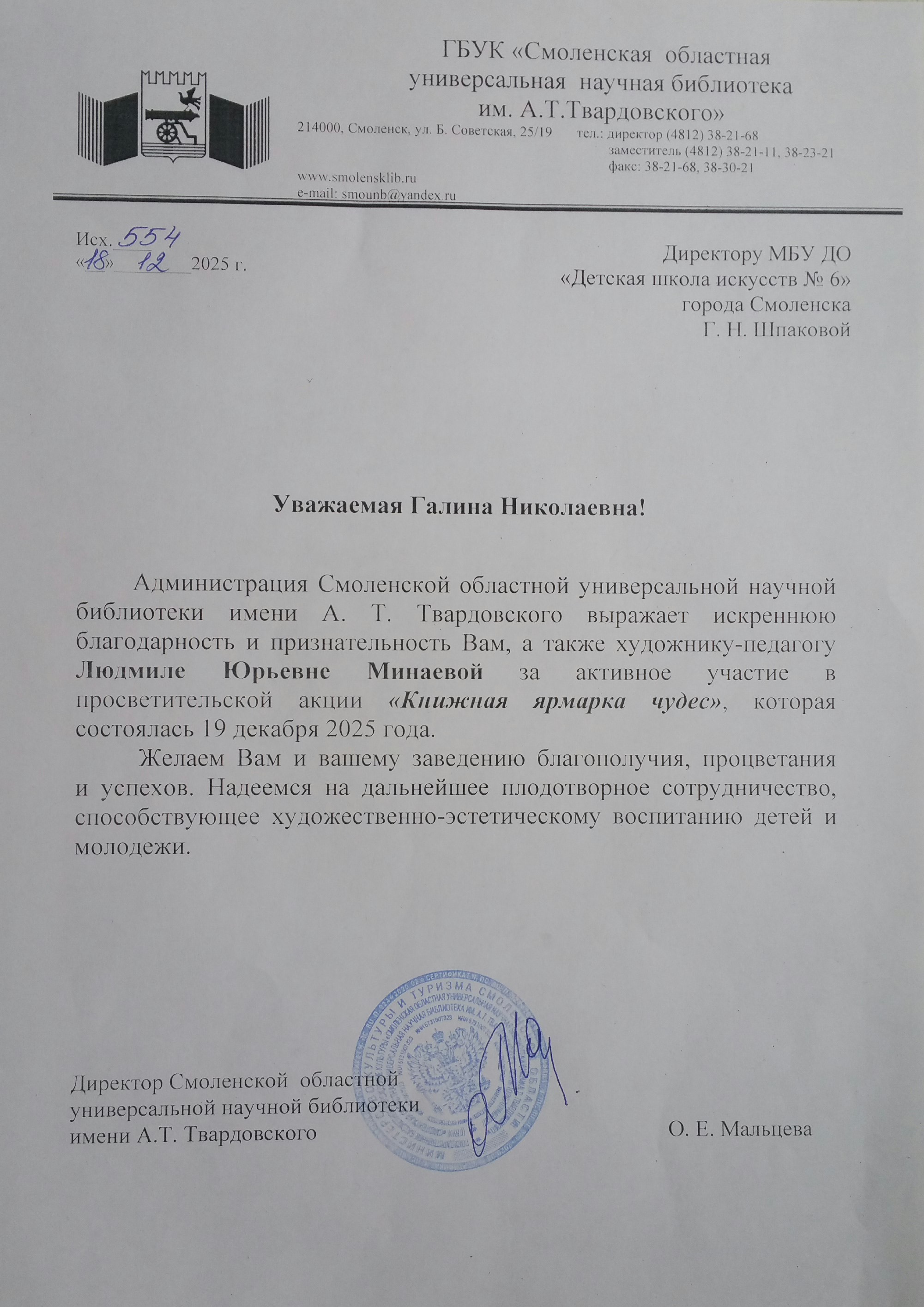 19 декабря преподаватель художественного отделения Минаева Л.Ю. приняла участие в просветительской акции "Книжная ярмарка чудес".